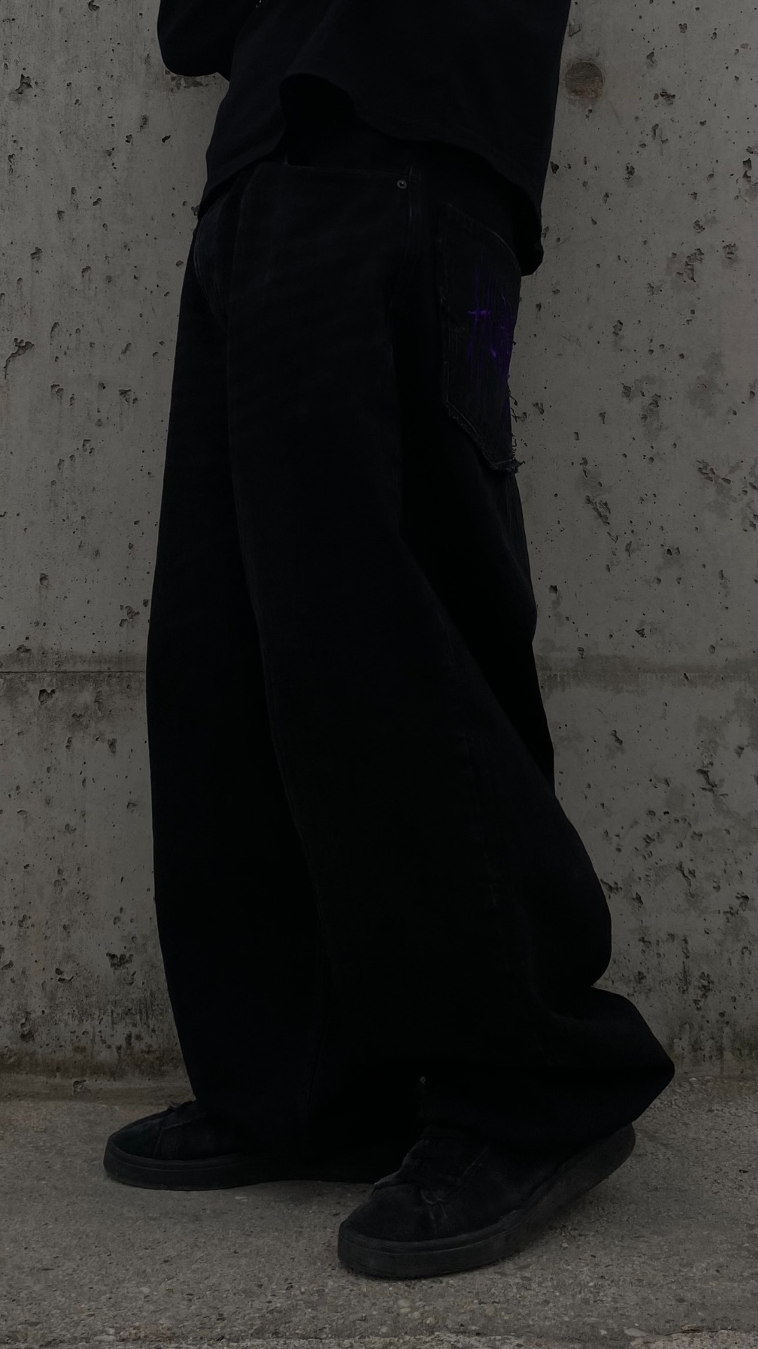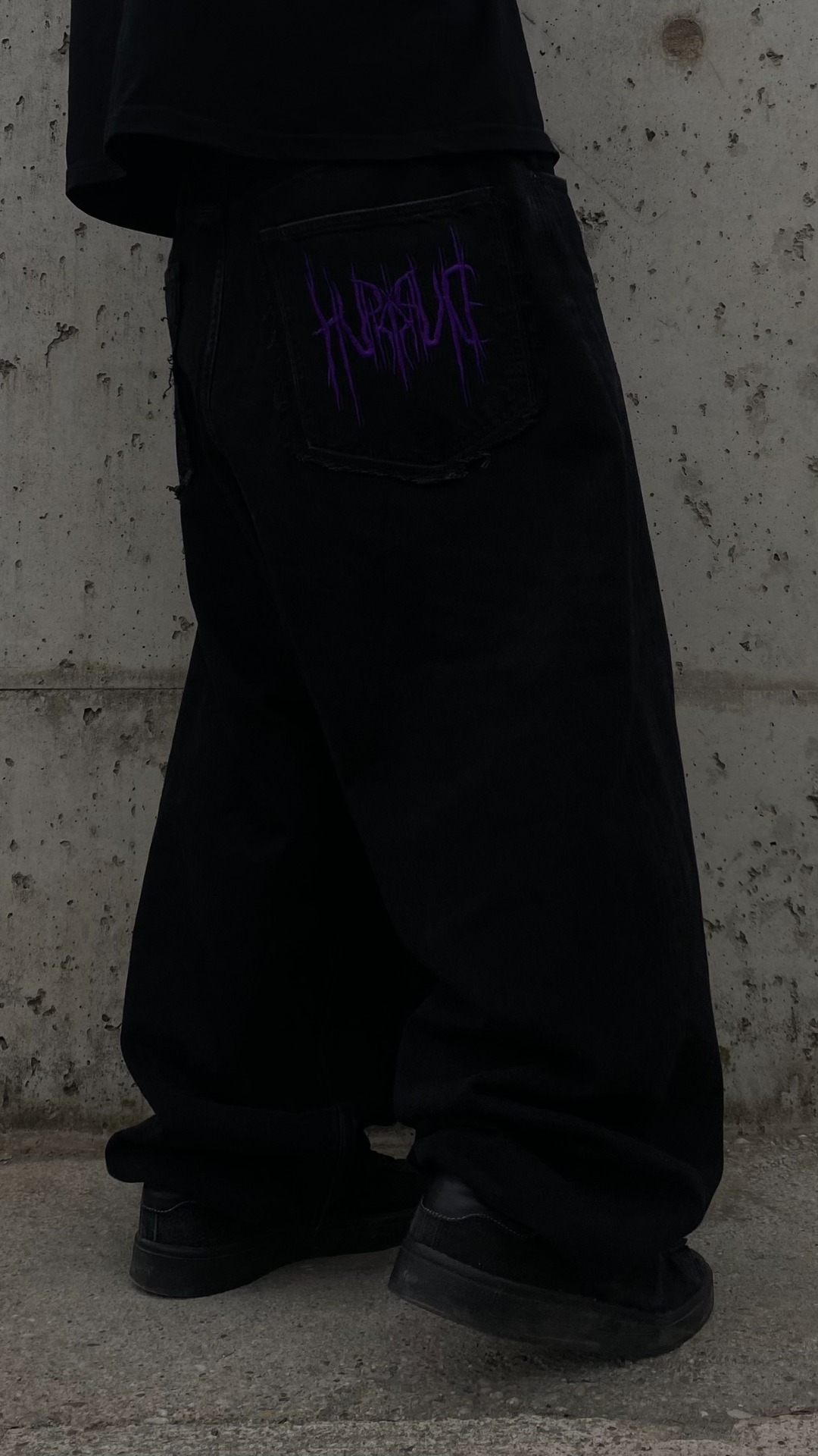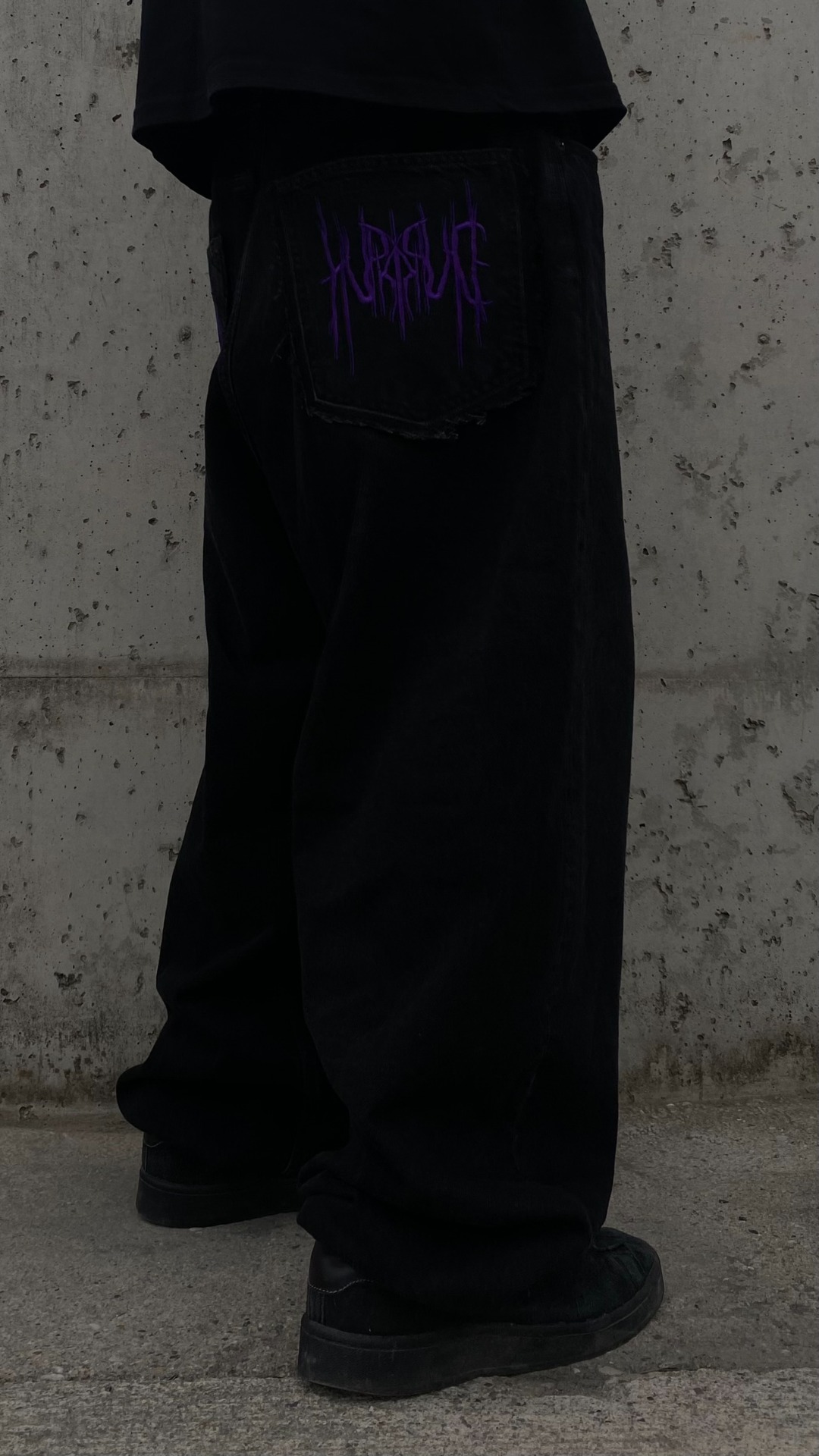 - He is 175cm and 75kg wearing size L, drawstring hem, non distressed, purple embroidery